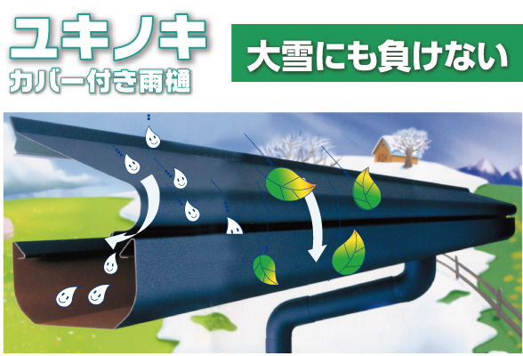雪はカバーの上を滑り落ちますので、雨どいの破損を防げます。