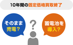 導入してから10年経つと固定価格での買い取り期間が終了します。継続して売電することも可能ですが、非常に安い単価となるため、蓄電池を導入し、電気を貯めて使うことを検討する方が多くいます。