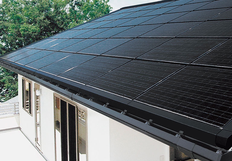屋根と太陽光の段差がないため、フラットで美しいデザイン屋根になります。